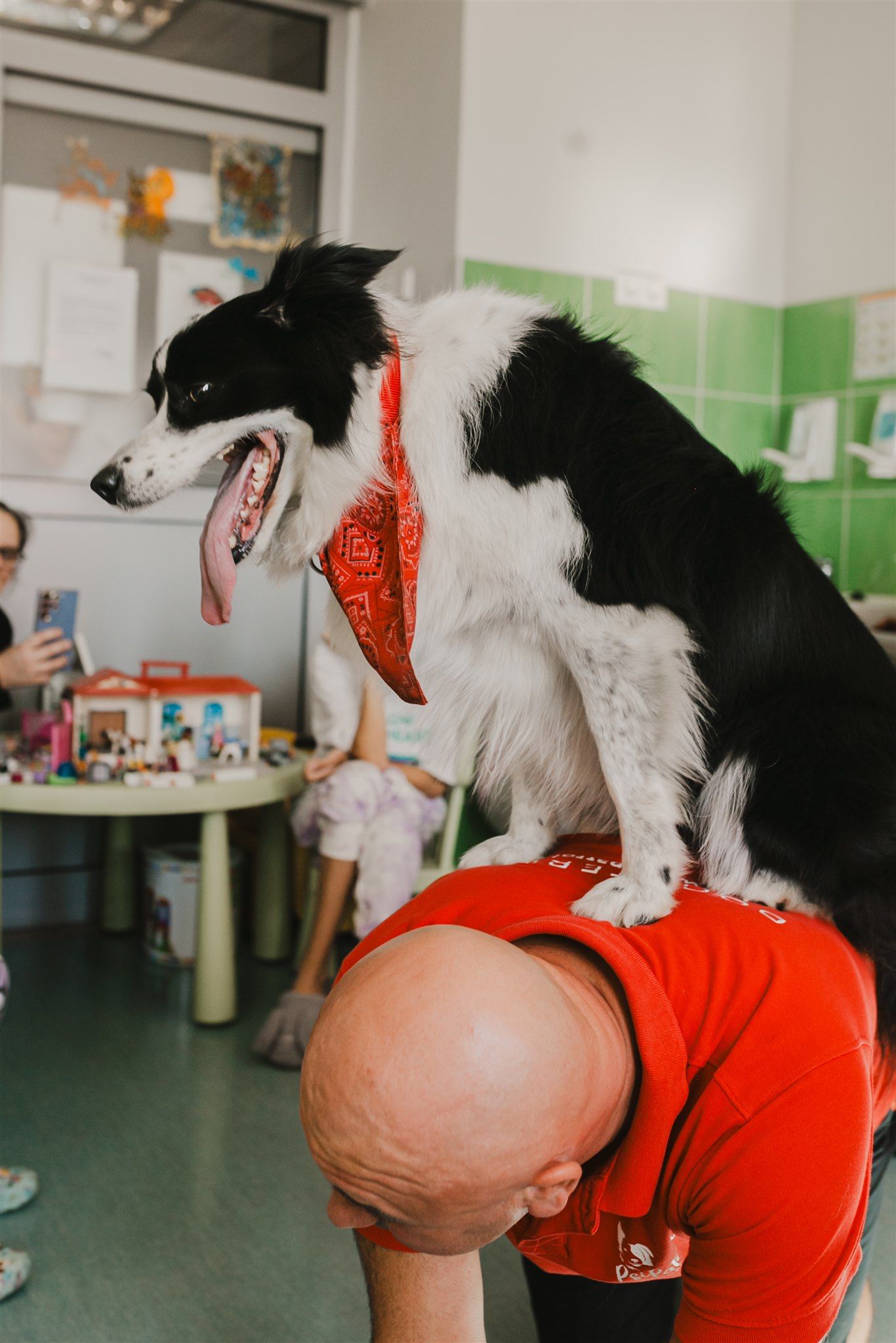 Pies również czerpie z takiego spotkania. Border Collie są bardzo wymagające, pracują intelektem, a pracując z dziećmi również się rozwijają. Pies czuje się spełniony, kiedy realizuje takie zadanie. Ale po godzinie musi odpocząć.