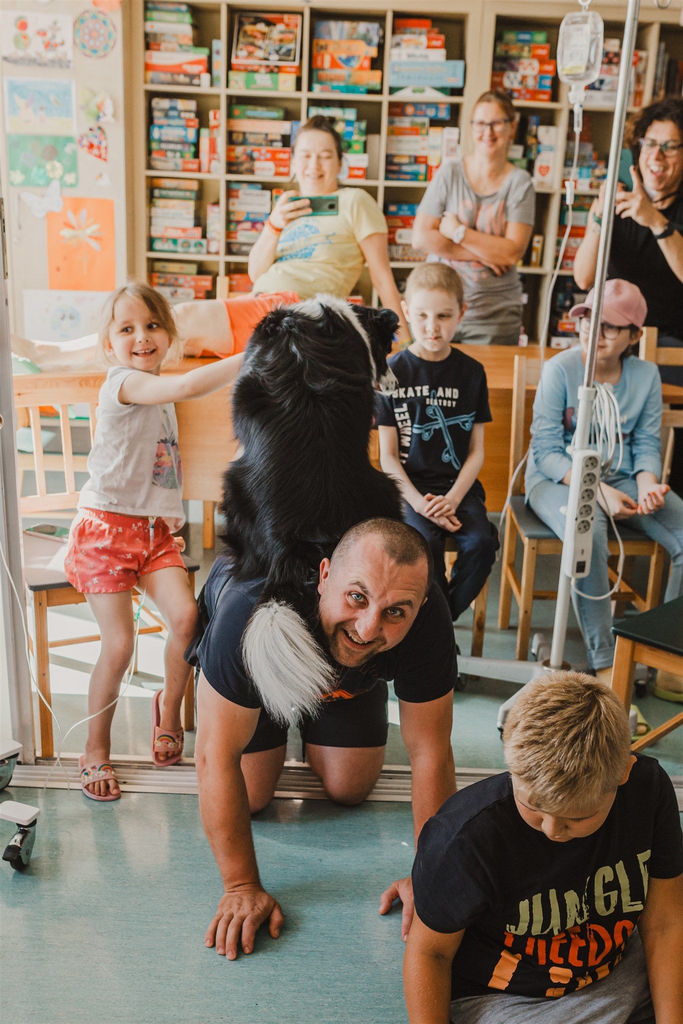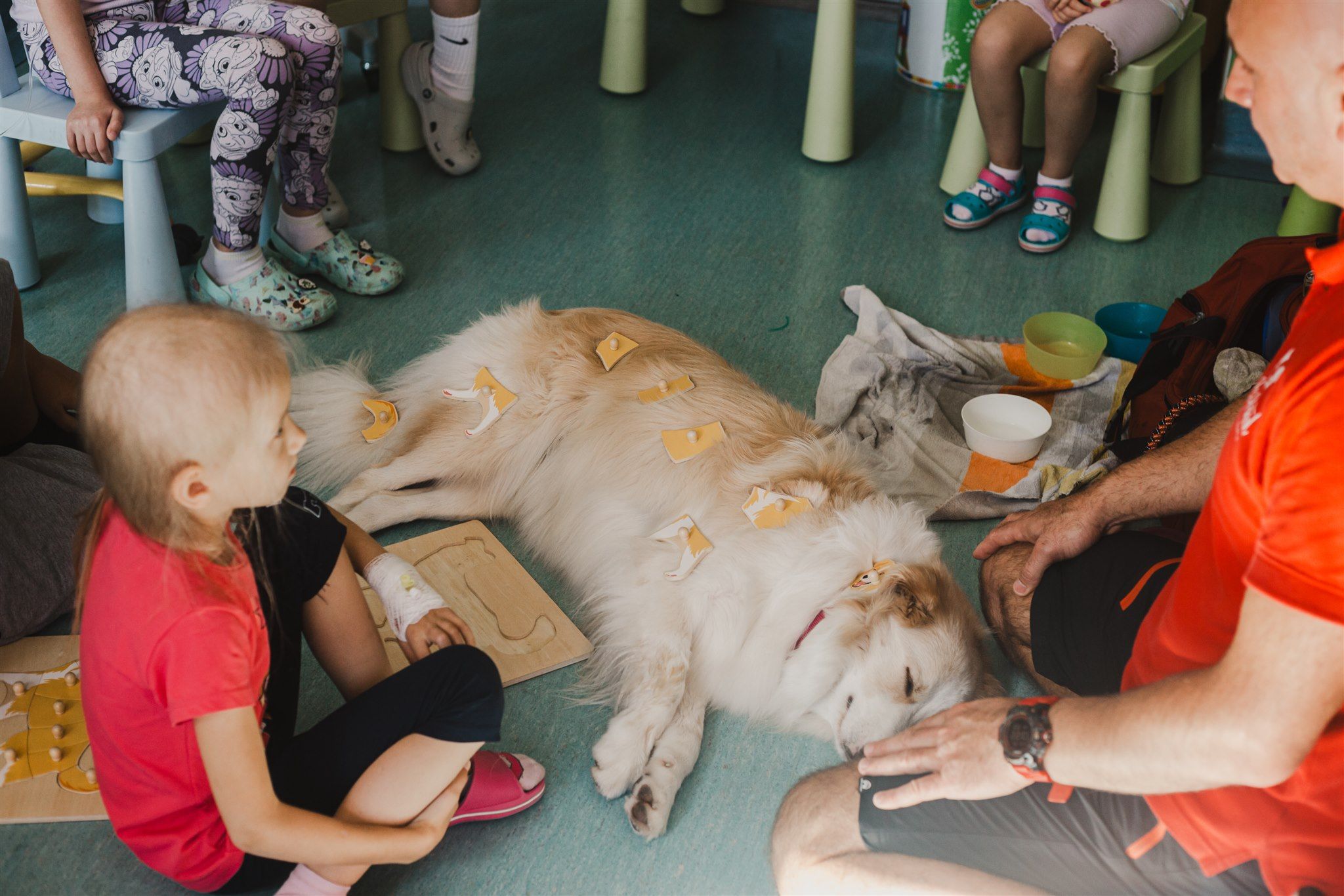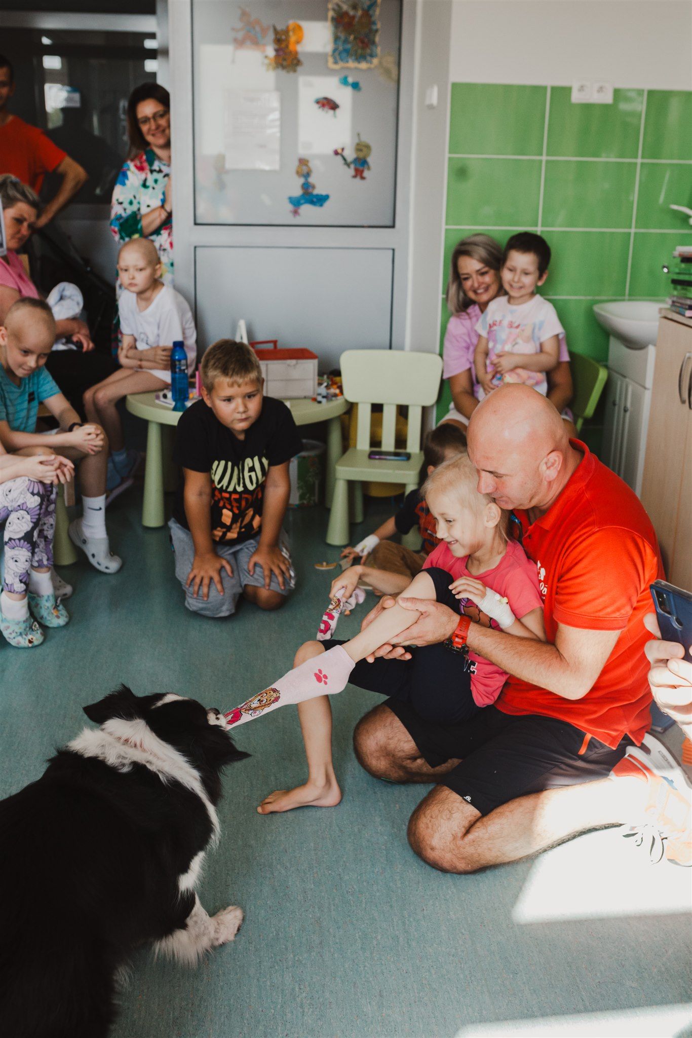 Tym razem było inaczej – dziewczynka, która leżała od tygodni niespodziewanie wstała z łóżka, kiedy zobaczyła psy, zniknął smutek, w oczach zobaczyłem błysk, uśmiech na twarzy, a to jest najważniejszy efekt terapeutyczny.