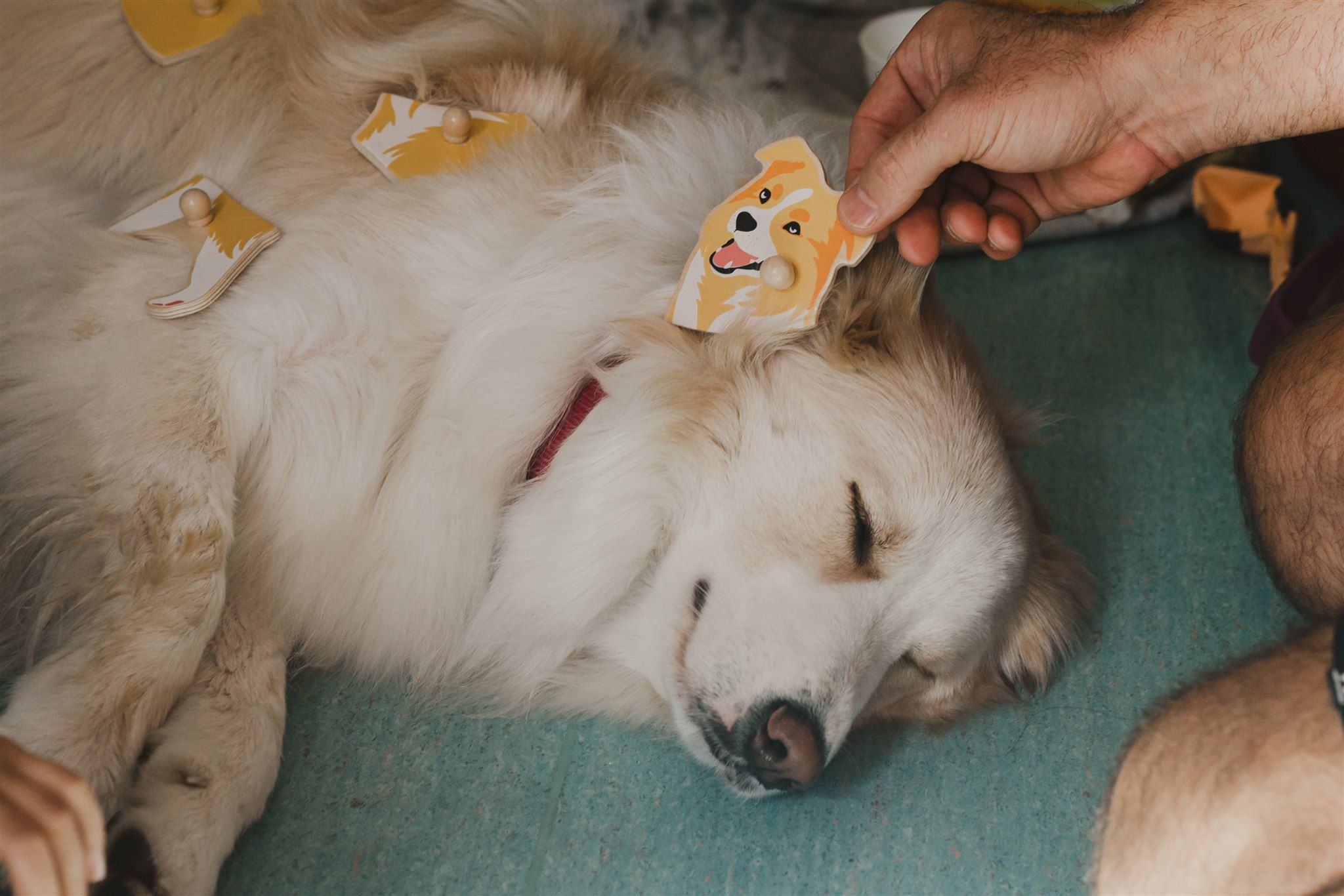 Zoya – biszkoptowa suczka, to spokojny pies. Najlepsza do ćwiczeń z sensoryki. Potrafi przez 15 minut leżeć i poddać się głaskaniu, jest absolutnie skupiona na tym zadaniu, do tego stopnia, by pozwolić na swoim ciele układać puzle. To ten właśnie spokój i opanowanie najmocniej oddziałuje na dzieciaki.