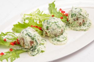 Bulion zagotuj z kurkumą. W miseczce dokładnie rozprowadzić mąkę w śmietanie, dodaj do tego kilka łyżek gorącego bulionu i dokładnie wymieszaj. Następnie wlej do bulionu ciągle mieszając, zagotuj na małym ogniu. Dopraw solą i białym pieprzem. Gotuj przez ok. 1 minutę co chwilę mieszając. Dodać masło i posiekany koperek, podgrzewaj jeszcze przez chwilę ciągle mieszając. Po kilku minutach sos jest gotowy.