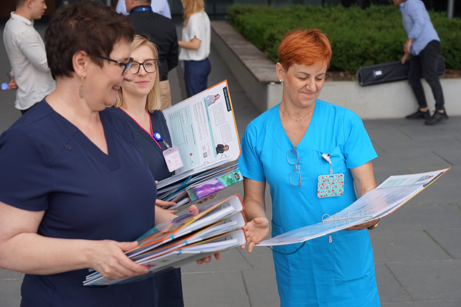 Spotkaliśmy się z bardzo serdecznym przyjęciem, profesjonalną organizacją spotkania ze strony rzecznika prasowego kliniki oraz wieloma miłymi słowami na temat zawartości Segregatora oraz jego piękną szatę graficzną. Ucieszyła nas także obecność przedstawicieli organizacji wspierających wrocławską klinikę na codzień – z Fundacji Cancer FIGHTERS oraz Fundacji Na Ratunek.